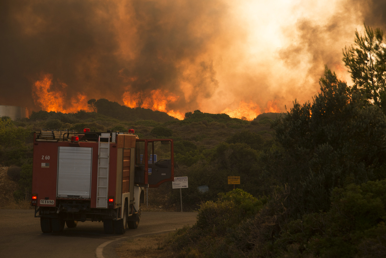 Στο νησί επιχειρούν ισχυρές δυνάμεις της Πυροσβεστικής με 116 πυροσβέστες με 38 οχήματα, 83 άτομα πεζοπόρο τμήμα, βυτιοφόρα οχήματα (ΟΤΑ και ιδιωτικά) και 3 χωματουργικά μηχανήματα του στρατού, αλλά και 1 ελικόπτερο και 2 αεροσκάφη. Στην προσπάθεια της κατάσβεσης θα συνδράμει και ο δήμος Βάρης-Βούλας-Βουλιαγμένης με ένα πυροσβεστικό όχημα 10 τόνων, με 2 κανόνια πίεσης, 4 άτομα προσωπικό και μία υδροφόρα 12 τόνων με 3 άτομα προσωπικό.